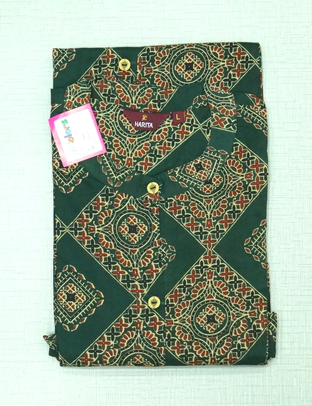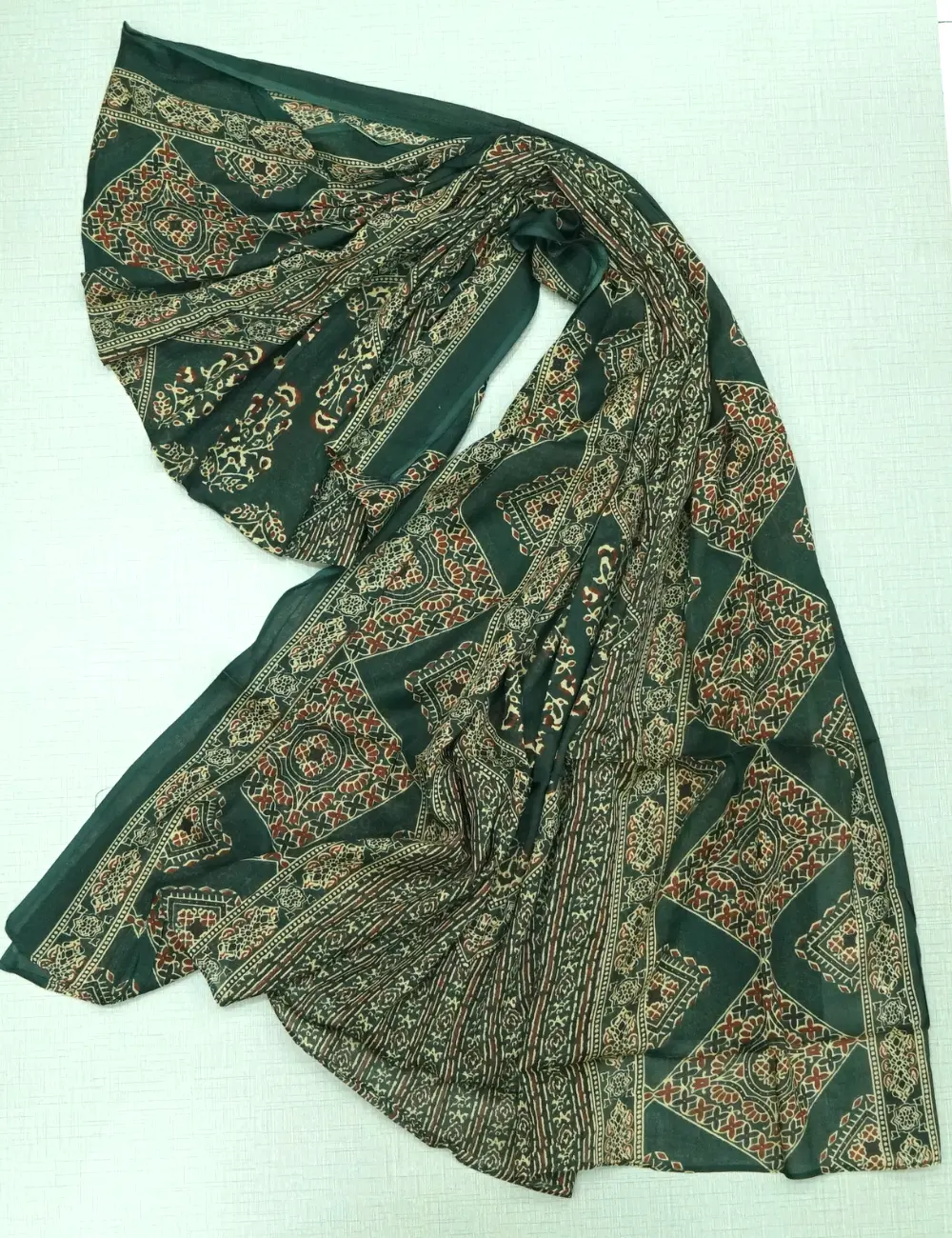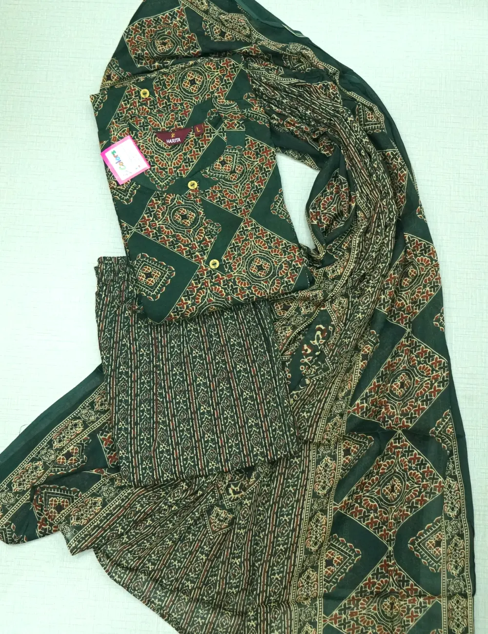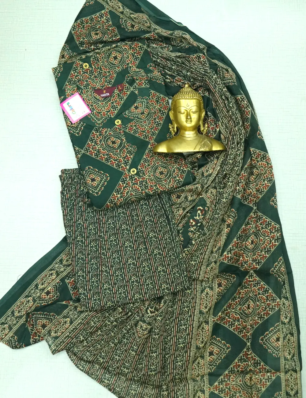 Green Colour Ajrakh Printed Pure Cotton Co-ord Set and with Bottom and Dupatta.