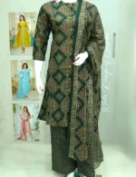 Cofee Brown Base Colour Pure Cotton Floral Printed Chudi Material with Printed Bottom and Lucknowi Work Dupatta.