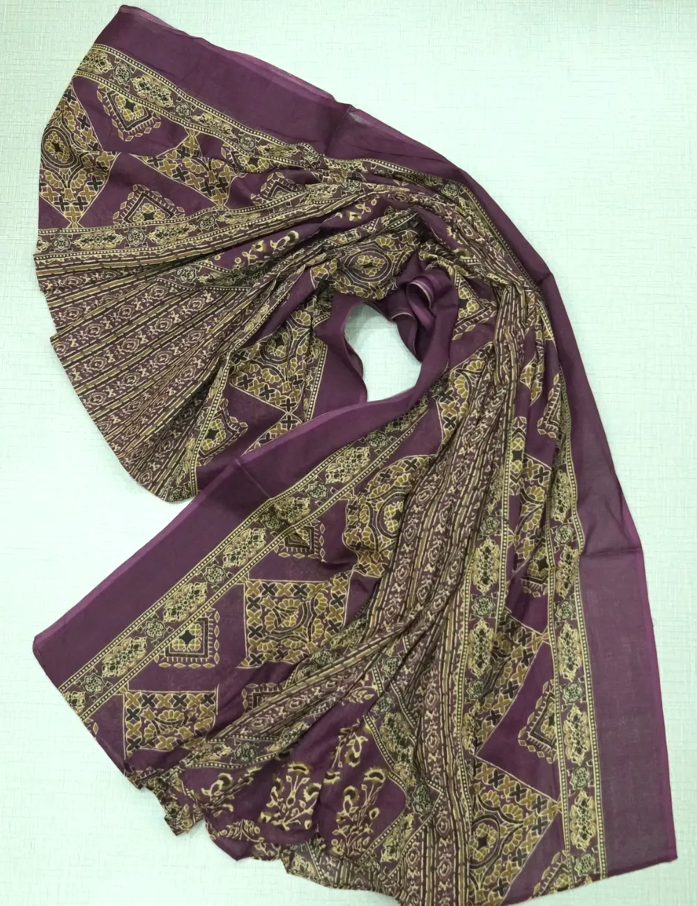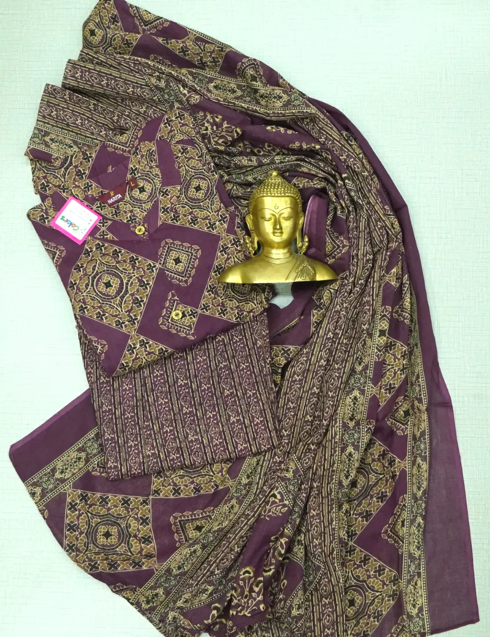 Grape Wine Colour Ajrakh Printed Pure Cotton Co-ord Set and with Bottom and Dupatta.