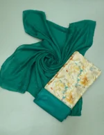 Teal Green Colour Floral Printed Linen Cotton Chudi Material with Contrast Bottom and Dupatta.